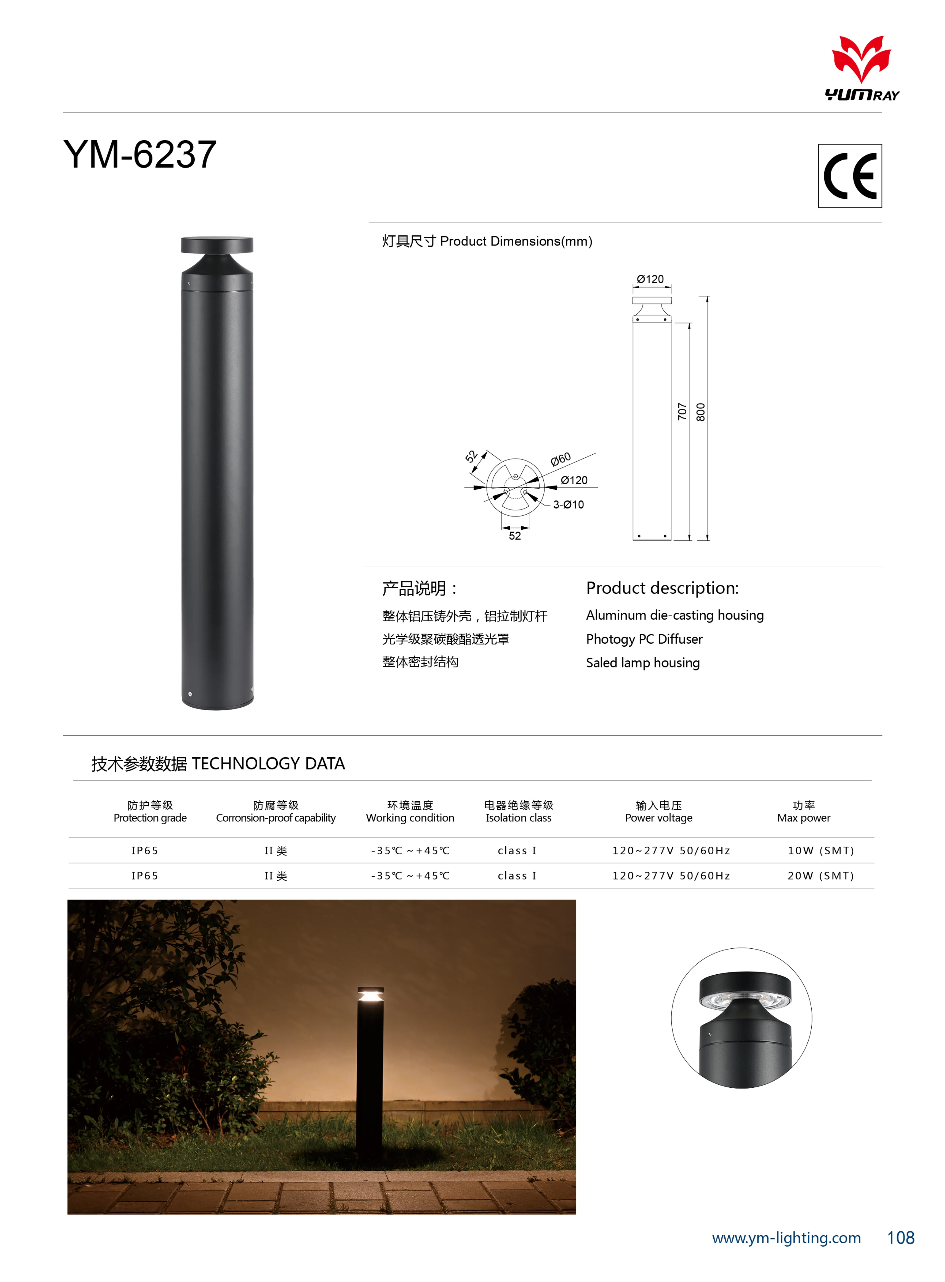 YMLED6237 China supplier aluminum LED bollard light outdoor lighting 20W