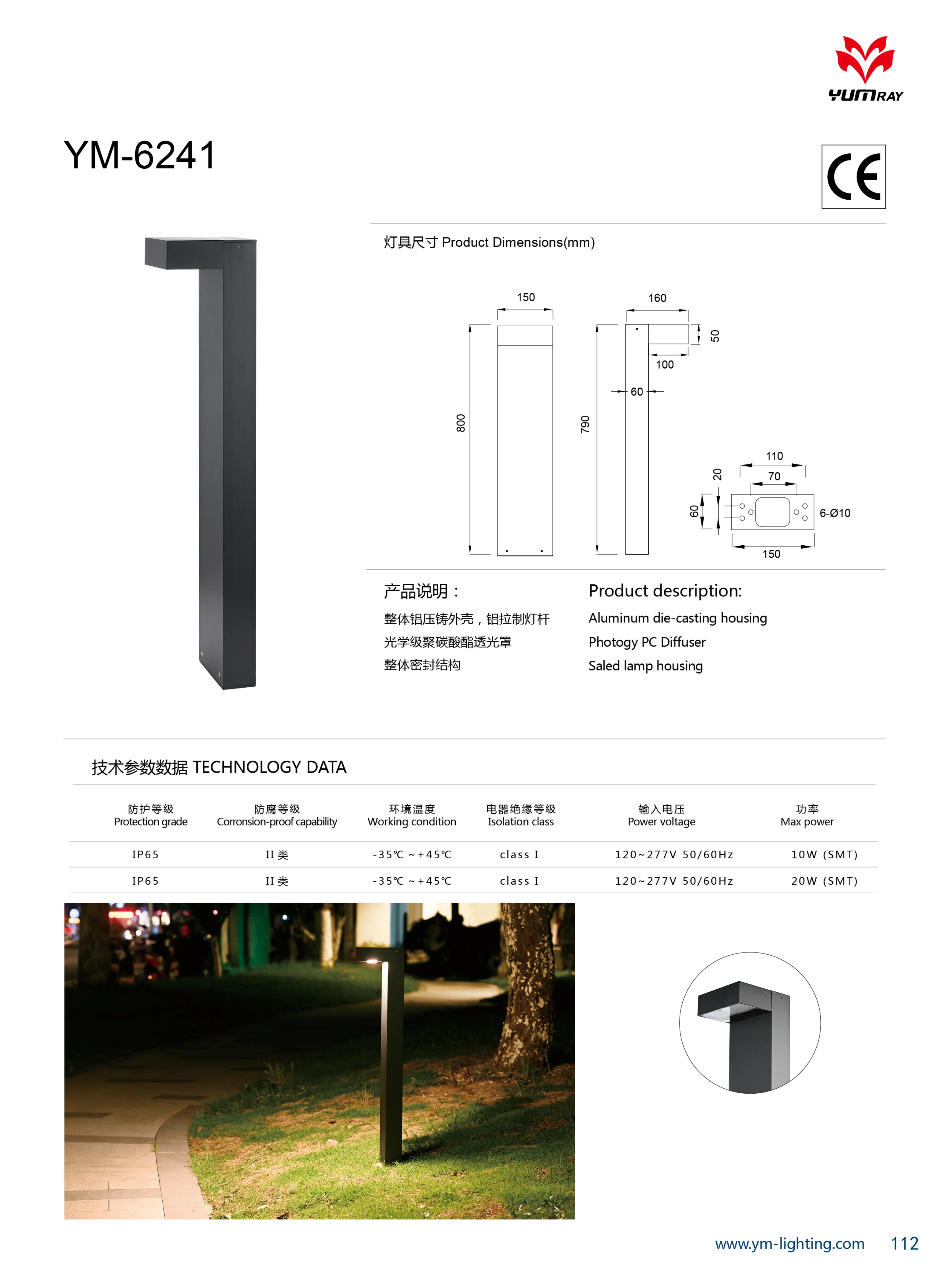 > YMLED6241 China supplier aluminum LED bollard light outdoor lighting 20W