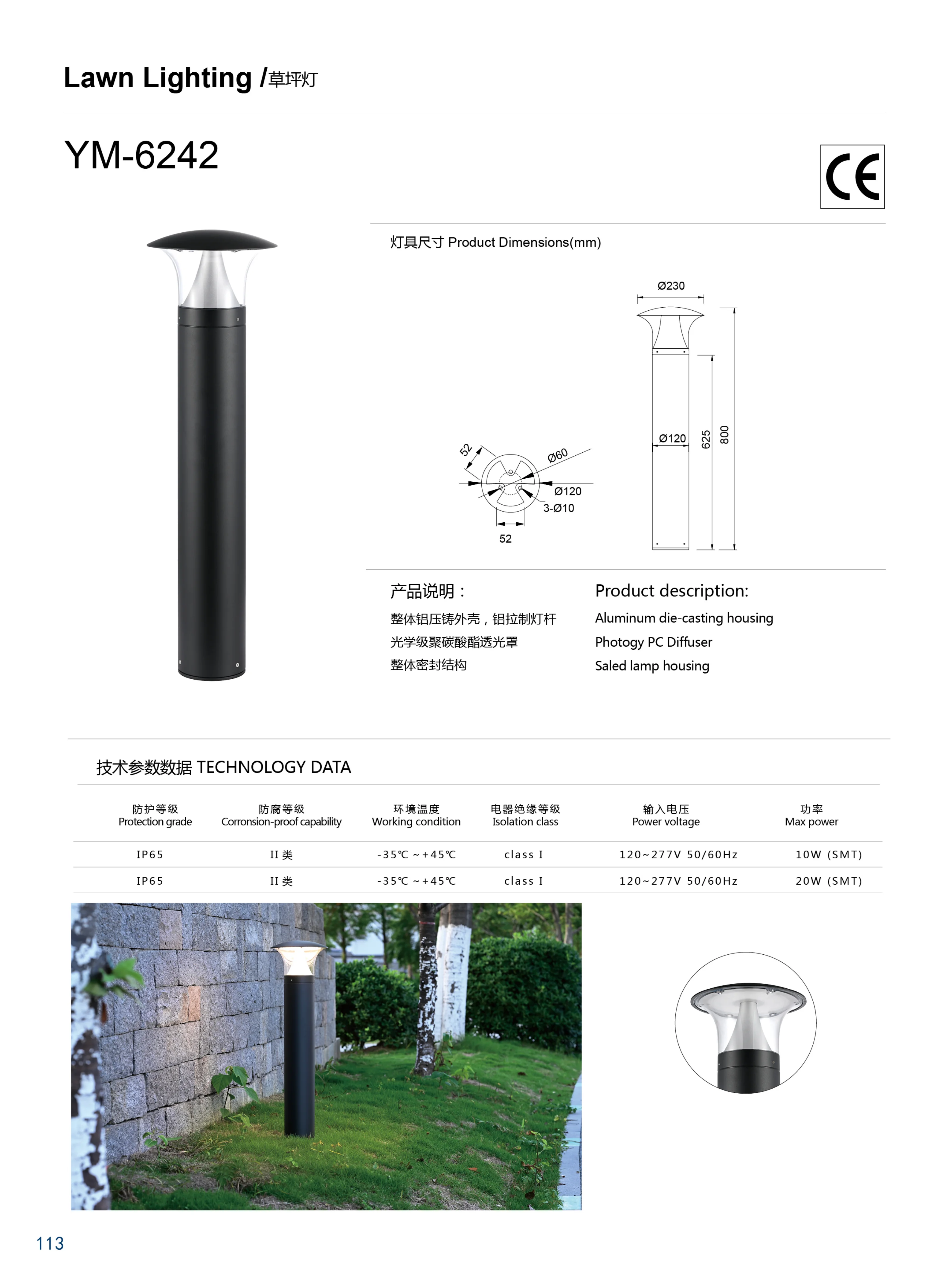 > YMLED6242 China supplier aluminum LED bollard light outdoor lighting 20W