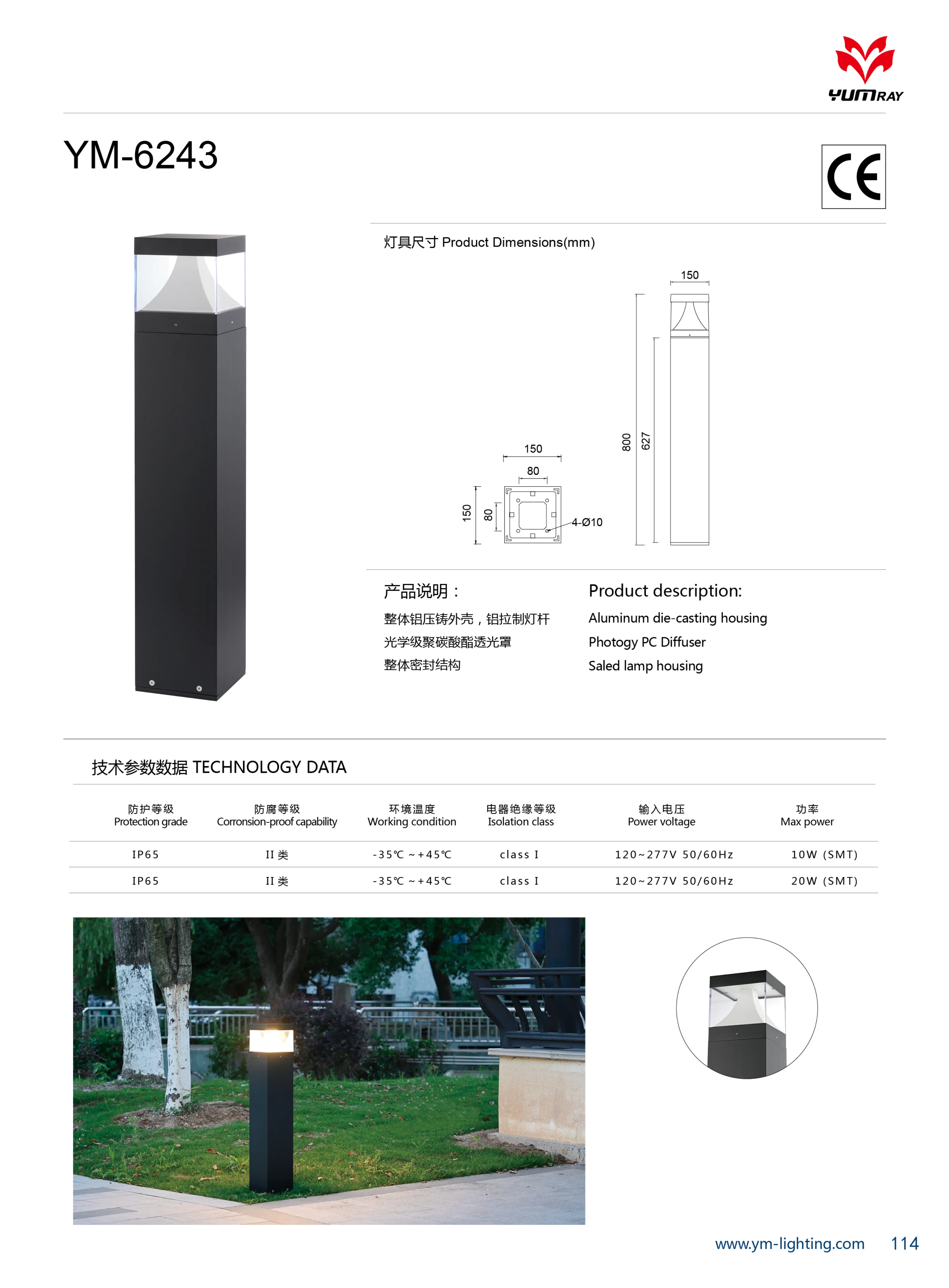 > YMLED6243 China supplier aluminum LED bollard light outdoor lighting 20W